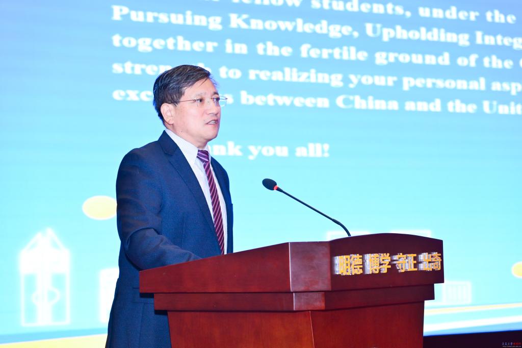 马蒂·马丁详细介绍了德雷克大学的国际化办学理念、历史沿革、人才培养目标和社会评价。他期望2025级新生在两校优质教育资源的联合培养下,提升个人专业素养,增强跨文化沟通能力,成长为拥有全球意识的国际化公民。