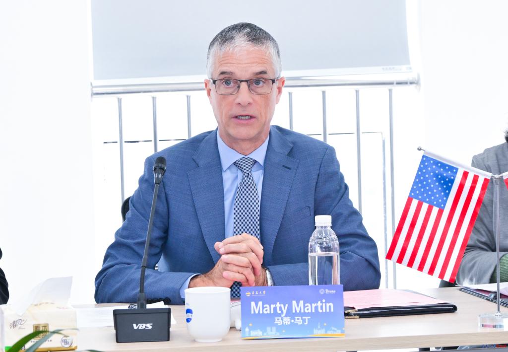 马蒂·马丁在讲话中充分肯定了联合学院自成立以来取得的积极成效,对双方团队的辛勤付出和卓越贡献表示感谢。他表示,联合学院在教学互动与学生反馈等方面均取得了良好成果,充分证明了两校合作模式的有效性与持续发展潜力。未来,德雷克大学将通过联合学院加强与青岛大学在师资交流、学生互访与课程融合等方面的协作,进一步推动双方在更多领域开展更深入的合作。