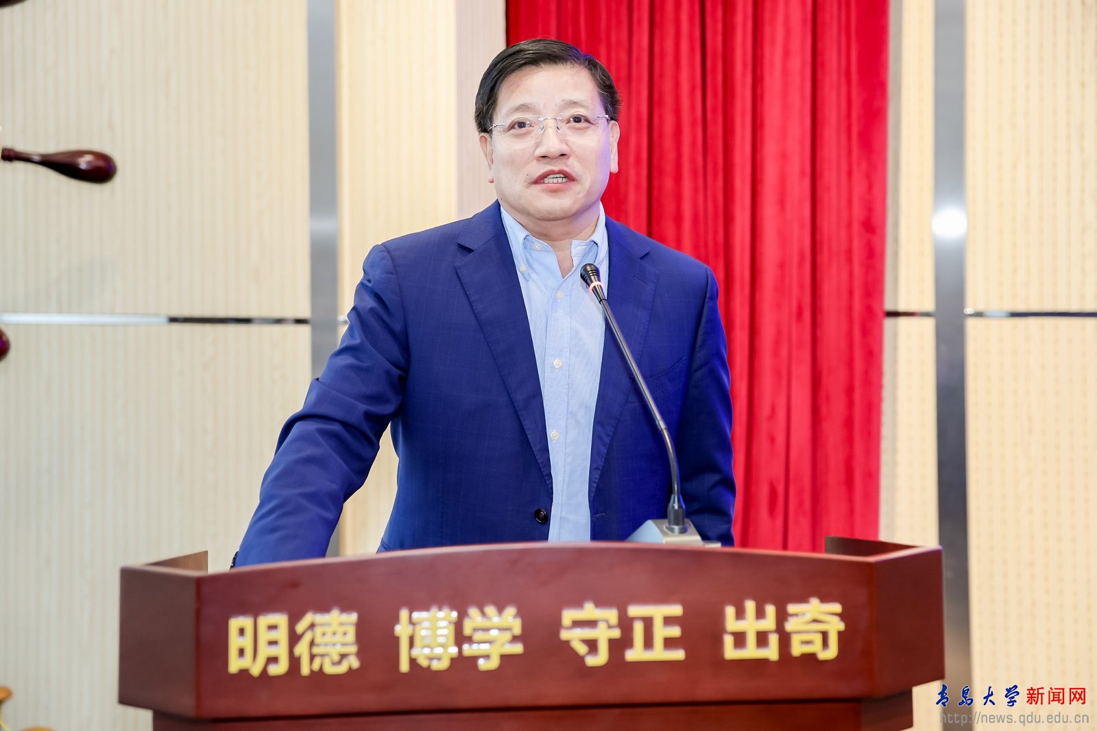 魏志强在致辞中代表青岛大学对此次活动的召开表示热烈祝贺,并对与会领导、嘉宾表示诚挚欢迎。他表示,青岛大学自百年医学根基发轫,融汇师范、纺织等多元学科传统,通过四校合并完成重要发展跨越的历程。他从跨区域产教融合、教育科技人才三位一体推动新质生产力发展、鲁渝携手共绘协作新篇三个维度,诠释了活动的意义。魏志强表示,进一步激发青岛大学“医工交叉”办学特色的创新活力,推动山东半岛城市群与成渝双城经济圈战略联动,必须搭建常态化校企交流平台,实现优势互补、人才共育。这场黄海之滨的“教育会盟”,为深化鲁渝两地教育科技人才融合注入了强大动力,也为区域协同发展指明了前进方向。
