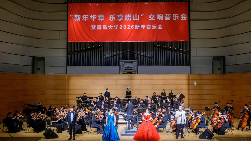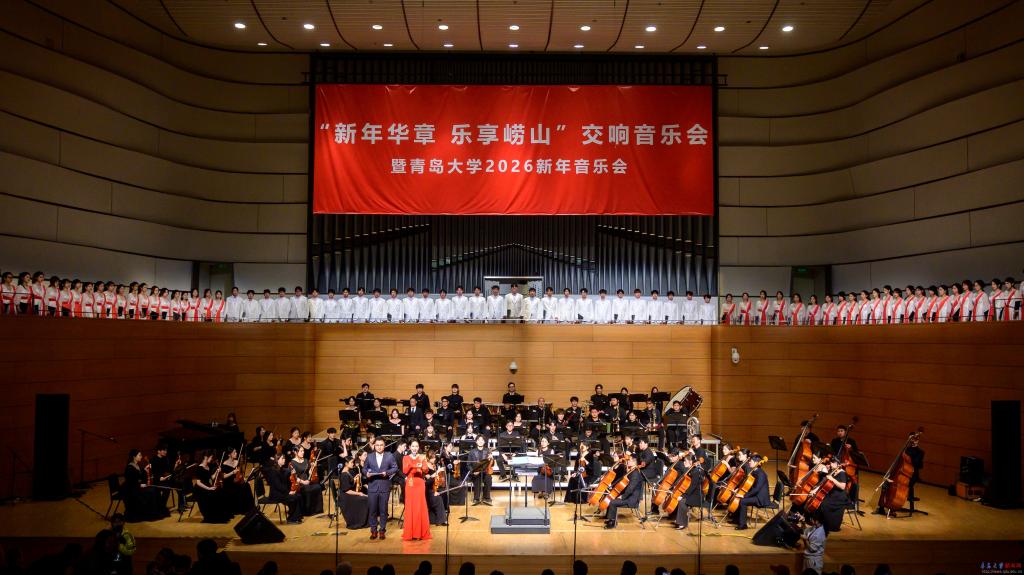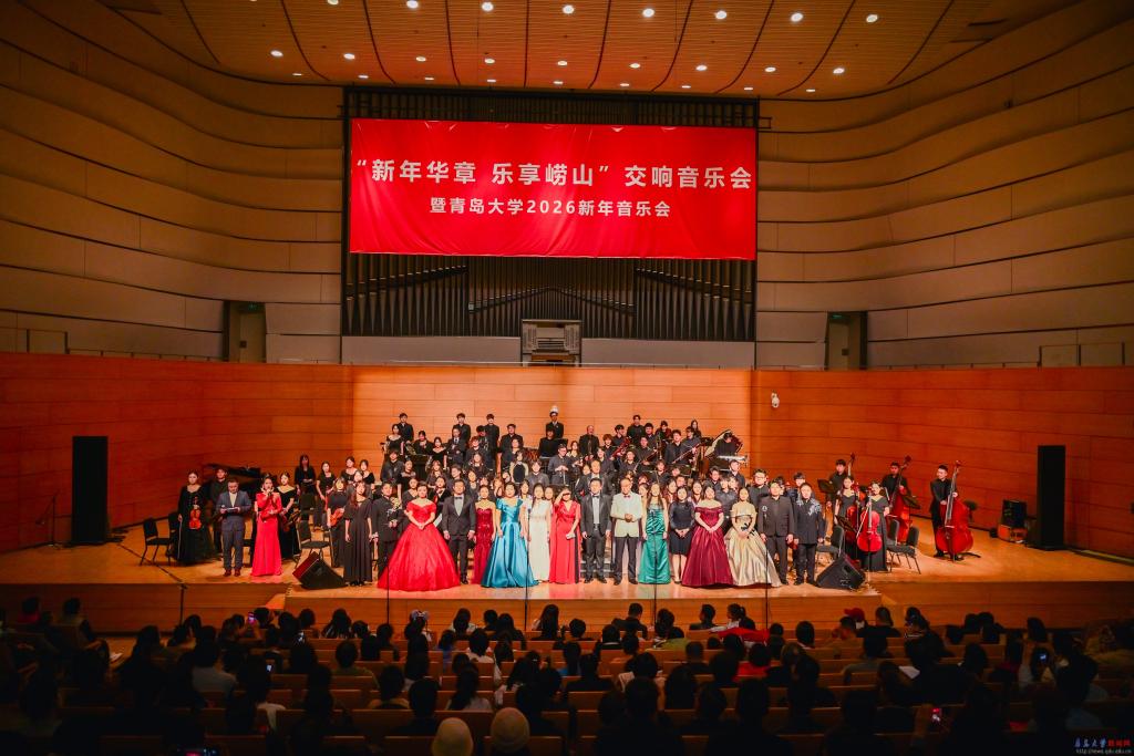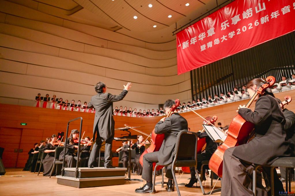 日月其迈,新程肇启。12月30日晚,“新年华章 乐享崂山”交响音乐会暨青岛大学2026新年音乐会在青岛大剧院华彩启幕。校领导魏志强、陈涛、李荣贵、刘恩贤、徐大连、李建波、麻国升、吴世珍,以及来自政府、合作企业、兄弟院校、附属学校等各界嘉宾,与学校师生医务员工、校友欢聚一堂,共赏音乐盛会,以激昂旋律迎接崭新一年。