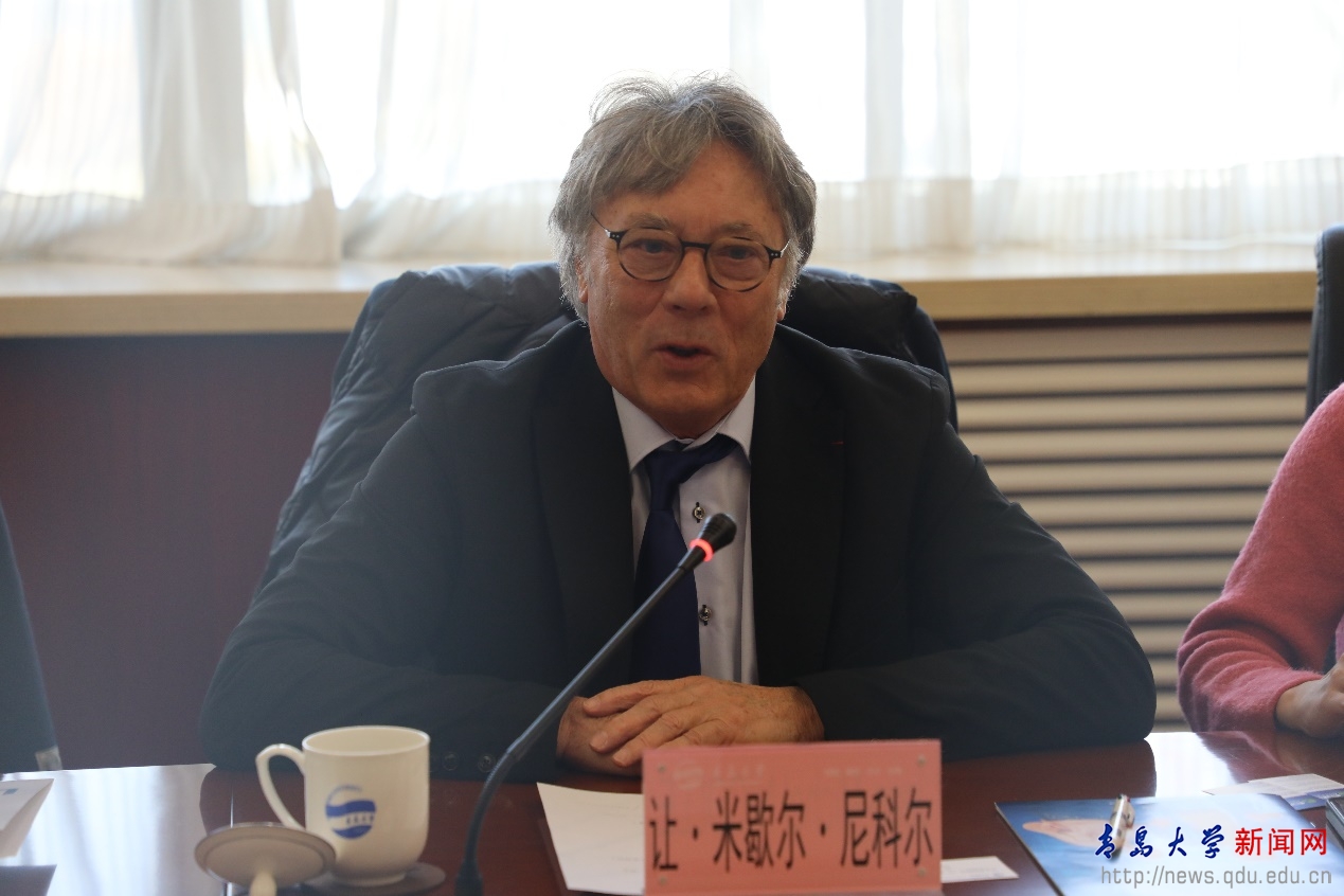 让・米歇尔・尼科尔对青岛大学的热情接待表示感谢,并简要介绍了拉罗谢尔工程师学院的办学特色。法国工程师学院体系是法国教育的代表,其典型特征包括:通过严格的竞考选拔优秀学生,实行小班化、个性化培养;课程注重通识基础与工程专业的深度融合,强调创新与管理能力并重;与空客、施耐德电气等领军企业建立深度合作,将产业需求贯穿教学全程;毕业生不仅拥有国家认证的工程师文凭,更以扎实技术功底、跨学科视野和高适应性广受企业青睐。拉罗谢尔工程师学院其跨学科培养模式、紧密的校企协同以及超过97%的就业率,生动诠释了法国工程师教育的卓越成效。尼科尔表示,学院高度重视国际化发展,已与多所世界知名高校建立合作,期待与青岛大学在机械、机器人、AI、传感器等优势学科领域开展深度合作,共同推进人才培养与科研创新。