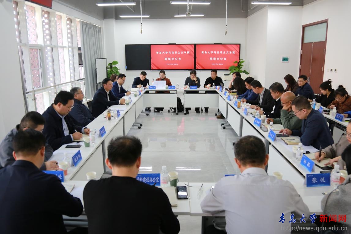 11月24日上午,校党委书记胡金焱到马克思主义学院召开现场办公会,并与学院党政领导班子、各科室负责人、教师代表等进行座谈。校党委副书记陈涛,校党委常委、副校长李建波参加会议。校党委常委、宣传部部长、马克思主义学院院长吴世珍主持会议。