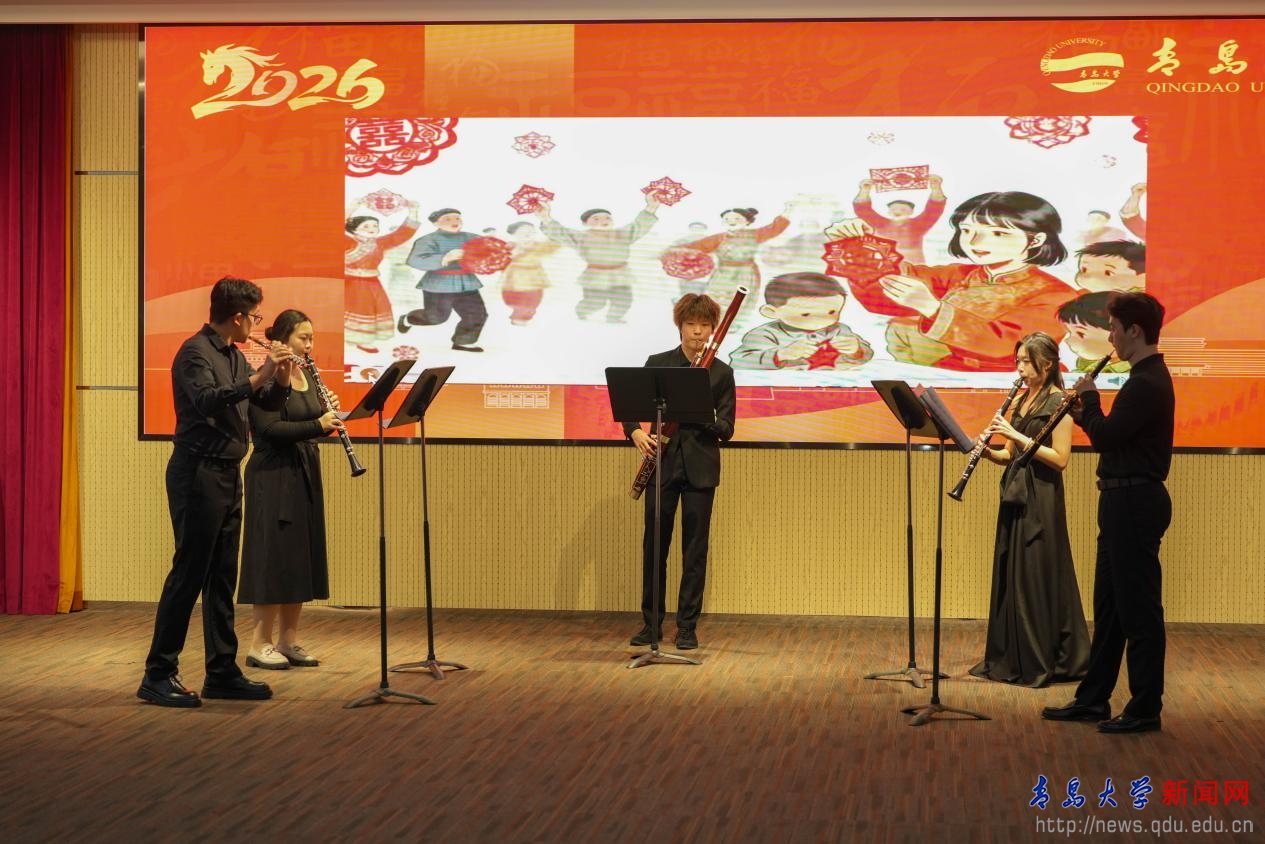 魏志强代表学校向出席联谊会的外籍教师和来宾表示热烈欢迎。他回顾了过去一年学校在国际化办学领域所取得的成绩。他指出,2025年学校积极拓展国际朋友圈,先后派出校级代表团访问了10个国家30余所高校,接待了36个国外校级代表团,与10所高校新建友好关系,目前已与39个国家的242所海外高校建立了友好合作关系,学校国际声誉和影响力不断提升。持续开展赴英国剑桥大学和日本东京大学等世界名校访学项目,新建赴新加坡南洋理工大学研究生访学项目,获批新增国家留学基金委资助项目1项,40余名同学获批国家留学基金委资助出国留学。外籍教师工作再结硕果,2025年有两位外国专家分别荣获中国政府友谊奖和齐鲁友谊奖。他表示,学校国际化办学工作所取得成绩,离不开青岛市相关职能部门的关心与支持。展望2026年,他希望包括外籍教师在内全体青大人继续并肩携手,全面构建学校国际化办学大格局,共同开创青岛大学美好未来。