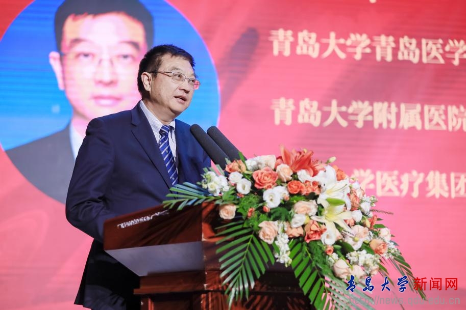 青岛大学附属医院大外科主任、博士生导师周岩冰教授作为教师及校友代表,回顾学院百年发展历程,分享个人医学坚守与成就,鼓励新生夯实基础、精进临床思维、传承医学精神,成长为有理想、有道德、有担当的卓越医学人才。