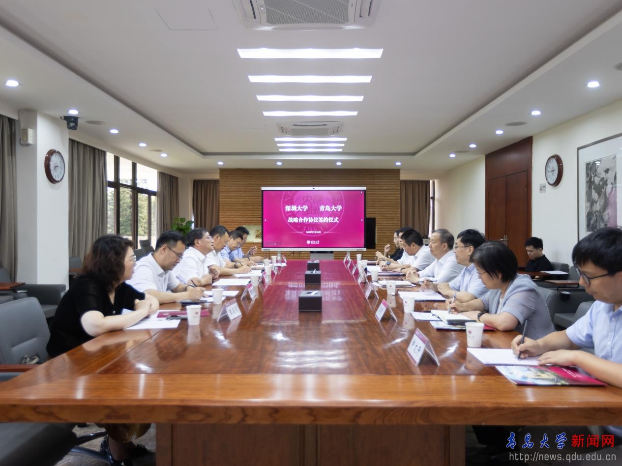 深圳大学党政办公室、发展规划部、科学技术发展研究院、校友联络部等相关单位负责人,青岛大学党委办公室、校长办公室、发展规划处、合作发展处、校友工作办公室、成果转化中心、产业技术研究院等相关单位负责人参加会议。