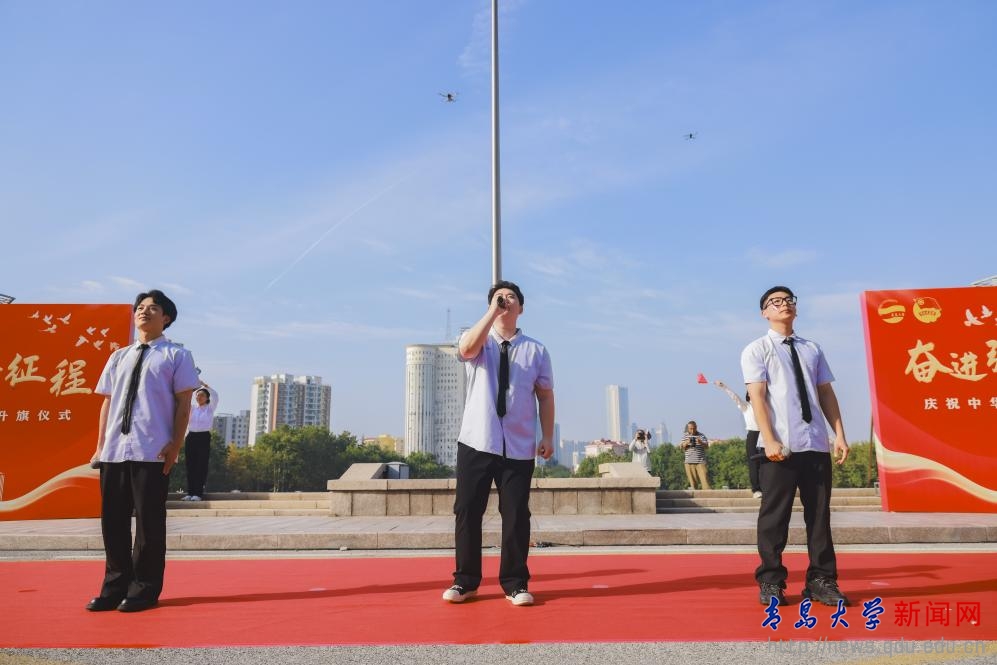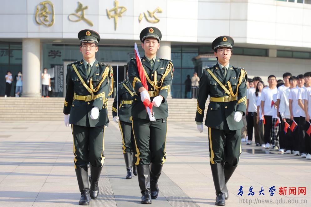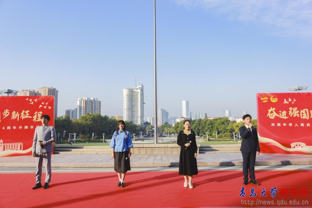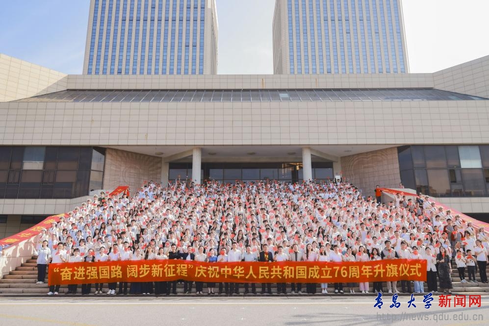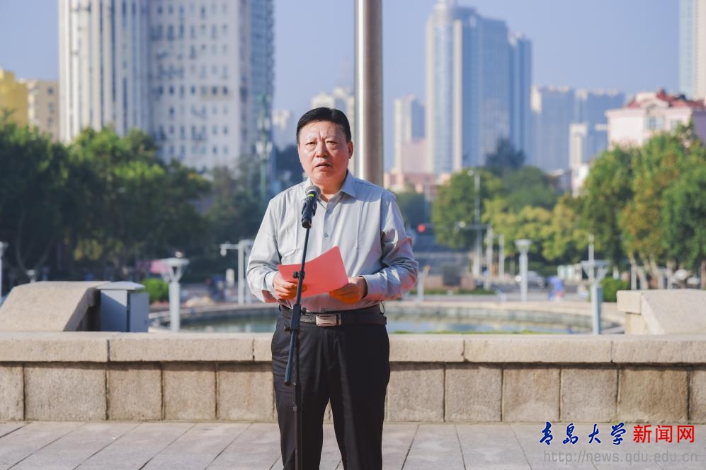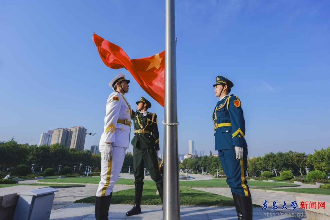 10月1日上午,我校在浮山校区和金家岭校区同时举行“奋进强国路 阔步新征程”庆祝中华人民共和国成立76周年升国旗仪式。校党委常委、副校长陈涛出席升旗仪式并讲话,校党委常委、组织部长张守珩出席升旗仪式。校团委书记李鹏主持仪式。