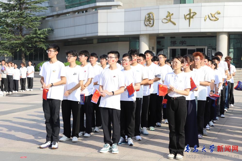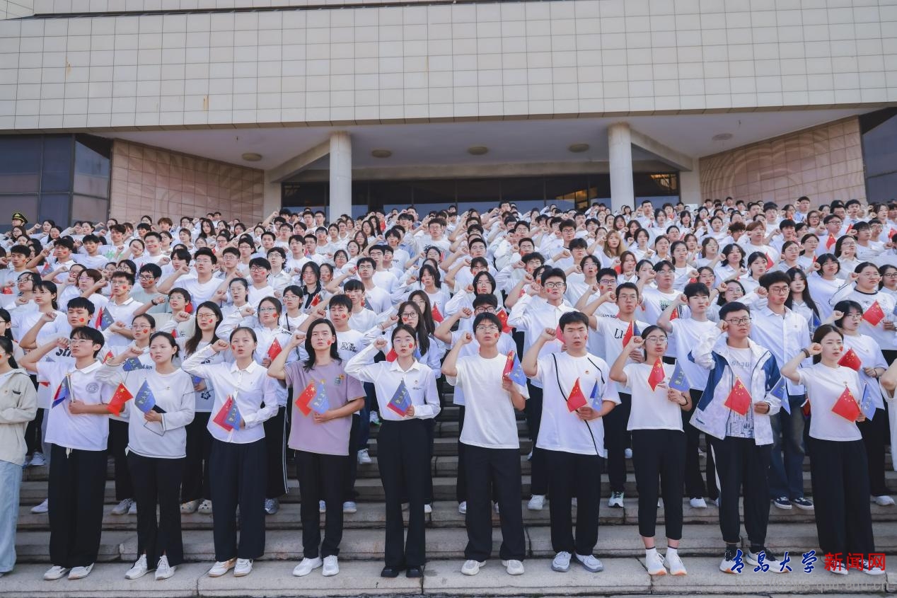 鲜红的国旗映衬下,青年学生代表用饱含热忱的青春话语,向祖国致以生日祝福。全体学生高举右拳,字字铿锵地立下 “奋进强国路 阔步新征程” 的青春誓言。全体师生挥舞着手中的国旗和校旗,共同唱响《红旗飘飘》,悠扬歌声传递着对祖国的无限热爱,现场洋溢着热烈温馨的氛围,尽显青大学子的赤诚与担当。