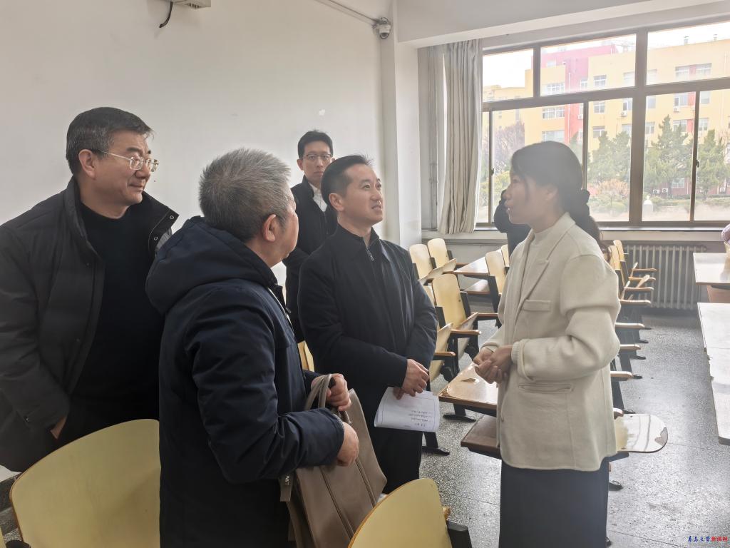其他校领导分赴马克思主义学院、历史学院、化学化工学院、政治与公共管理学院、物理科学学院、计算机科学技术学院、青岛医学院、基础医学院、环境与地理科学学院等教学单位,随机听取了不同学科的课堂教学,深入了解新学期各专业的教学情况。课后,校领导与任课教师亲切交谈,就课程内容设计、讲授逻辑安排、课堂互动效果等方面进行探讨,并向同学们询问对课程的理解程度、学习中的难点困惑以及开学初的适应情况,认真听取师生对教学管理和学习体验的意见建议。