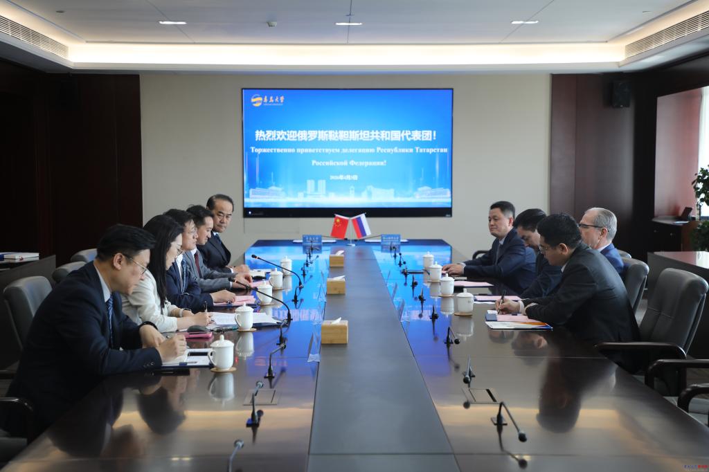 4月3日,俄罗斯鞑靼斯坦共和国行政长官助理阿尔伯特·吉尔穆季诺夫、喀山联邦大学副校长吉米尔汗·阿里舍夫一行到访我校。校长魏志强会见代表团并进行座谈,校党委常委、副校长麻国升主持会议。双方在2026—2027年“中俄教育年”框架下,围绕“中俄先进技术大学”建设、深化两国高等教育合作等议题展开了深入交流。