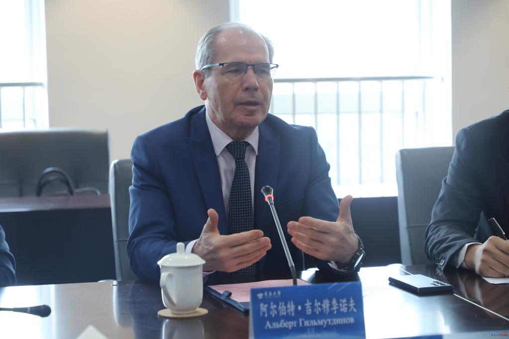 阿尔伯特·吉尔穆季诺夫介绍了俄罗斯鞑靼斯坦共和国经济社会与科教发展情况。他表示,鞑靼斯坦是俄罗斯重要的科研教育中心和工业重镇,在石油化工、航空制造、船舶制造等领域具有显著优势,区域内高校资源密集、学科门类齐全,具备开展高水平国际合作的坚实基础。希望以此次访问为基础,进一步深化与青岛大学在教育与科技领域的交流合作,推动双方合作迈向更高水平。