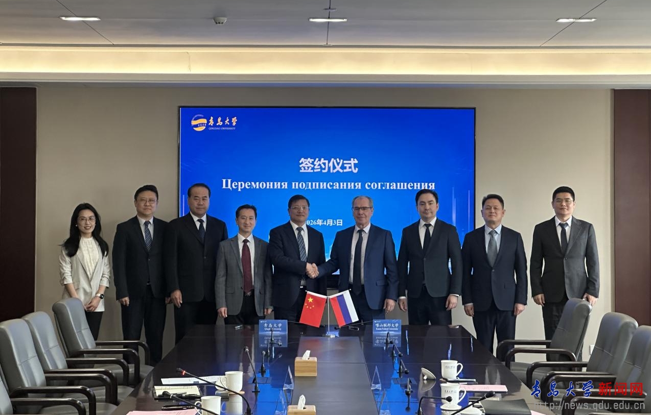 会上,魏志强对代表团一行来访表示热烈欢迎。他指出,青岛大学学科门类齐全,在人工智能、电子信息、纺织材料、新能源、医疗器械、智能制造等领域具有显著优势。作为上合经贸学院的实施主体,学校积极服务国家对外开放战略,持续推进与上合组织国家高校的交流合作,致力于打造高水平国际教育合作平台。青岛大学将以2026—2027年“中俄教育年”为契机,依托山东省与鞑靼斯坦共和国良好的地方合作基础,积极参与“中俄先进技术大学”建设,进一步拓展与喀山联邦大学等俄罗斯鞑靼斯坦共和国高校在人才培养、科学研究、成果转化、产教融合等领域的务实合作,推动中俄教育合作走深走实。