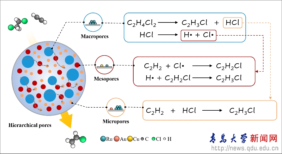 近日,我校材料科学与工程学院,能源与环境材料研究院李星运教授,与东北电力大学王柏林教授,北京大学马丁院士合作,在Nature Communications期刊发表了在催化制备PVC单体氯乙烯中的最新研究成果:“Built-in tandem catalysis in hierarchical pores for efficient vinyl chloride production”(Nat. Commun., 2026, DOI: 10.1038/s41467-026-70329-y)。
