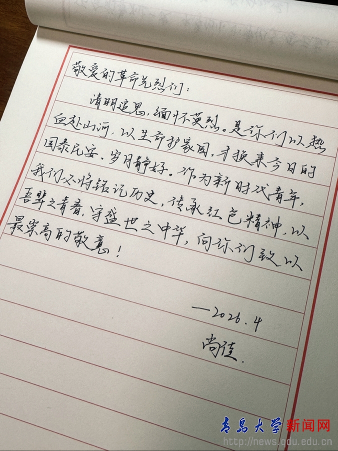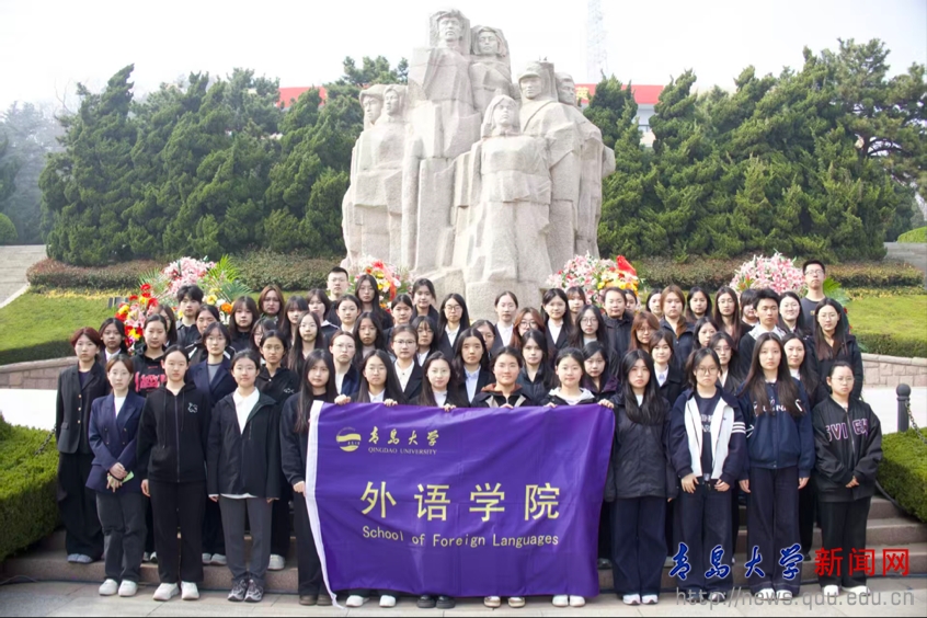 外语学院组织学生前往青岛市革命烈士纪念馆开展清明祭扫与参观学习活动,同学们奏唱国歌、默哀致敬,缓步走入抗战馆、军魂馆,在历史照片、实物与文献中了解青岛军民的斗争历程,立志以语言为桥传递中国精神,用行动践行青春誓言。