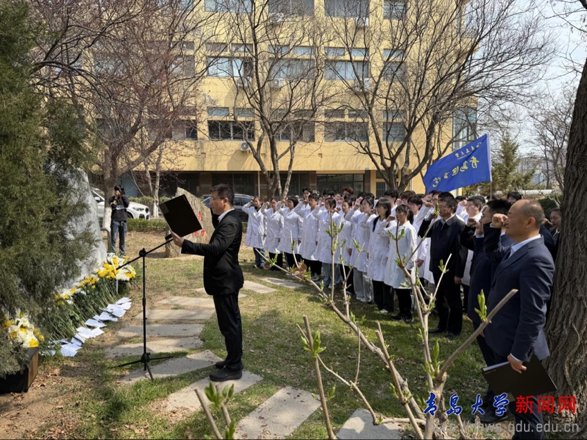 青岛医学院、口腔医学院在沈福彭教授雕塑前举行缅怀纪念仪式,师生与教授家属共同追思先贤贡献,重温医学生誓言,砥砺医德医术、涵养师德师风。