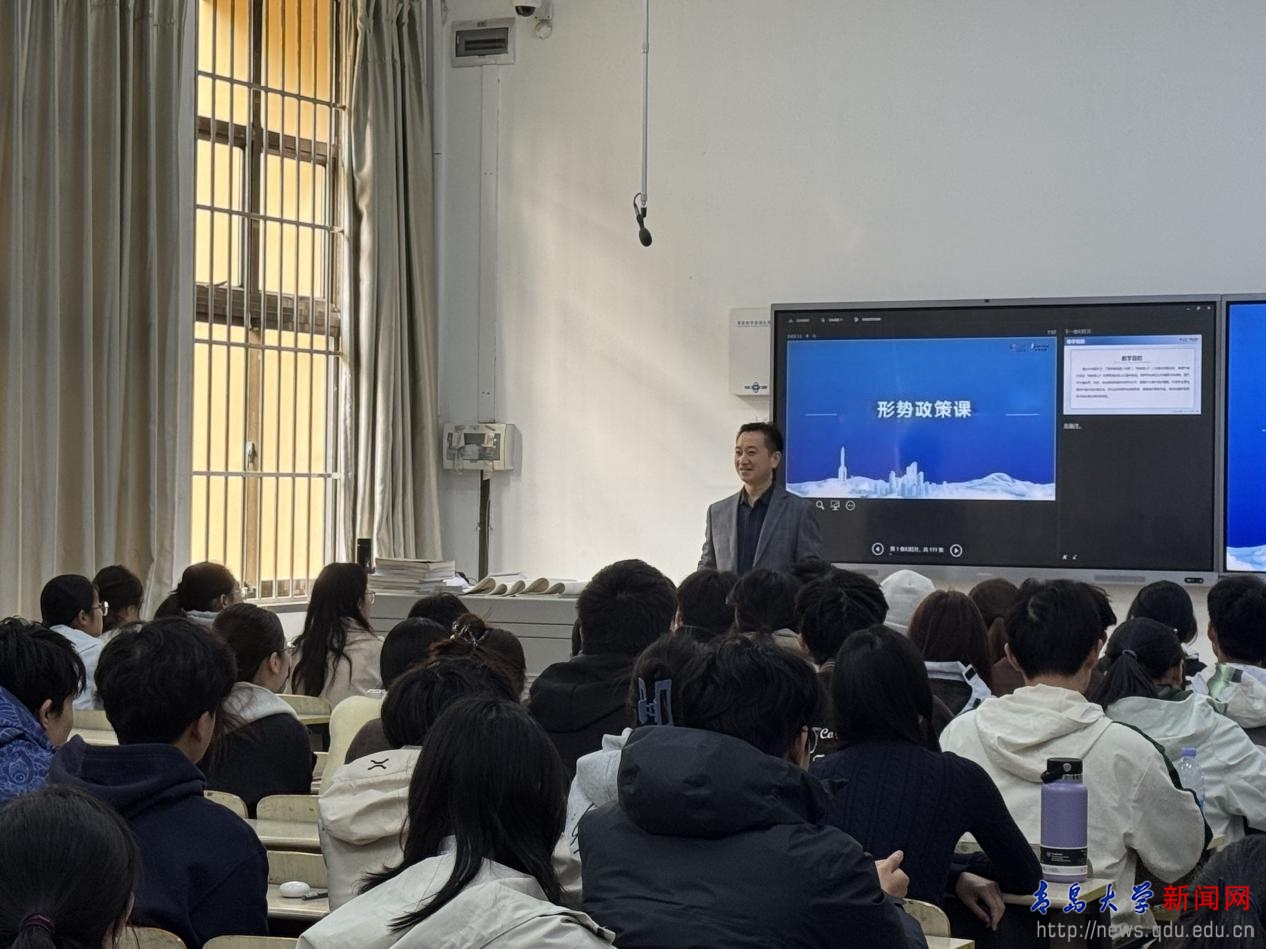 3月28日上午,校党委常委、副校长麻国升走进课堂,以中美关系为题为环境与地理科学学院学子带来了一堂精彩的形势与政策课。课程紧密结合当前复杂多变的国际形势,围绕大国关系与全球治理的热点议题与同学们进行了深入的解读与交流。