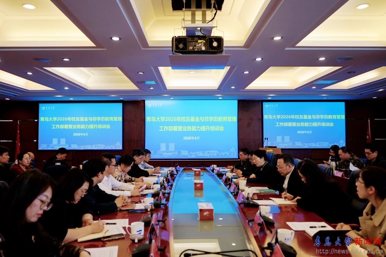 4月14日下午,青岛大学2026年校友、教育基金与非学历教育管理工作部署暨业务能力提升培训会在浮山校区办公楼407会议室举行。校党委常委、副校长刘恩贤出席会议并讲话。合作发展处处长王海荣主持会议。