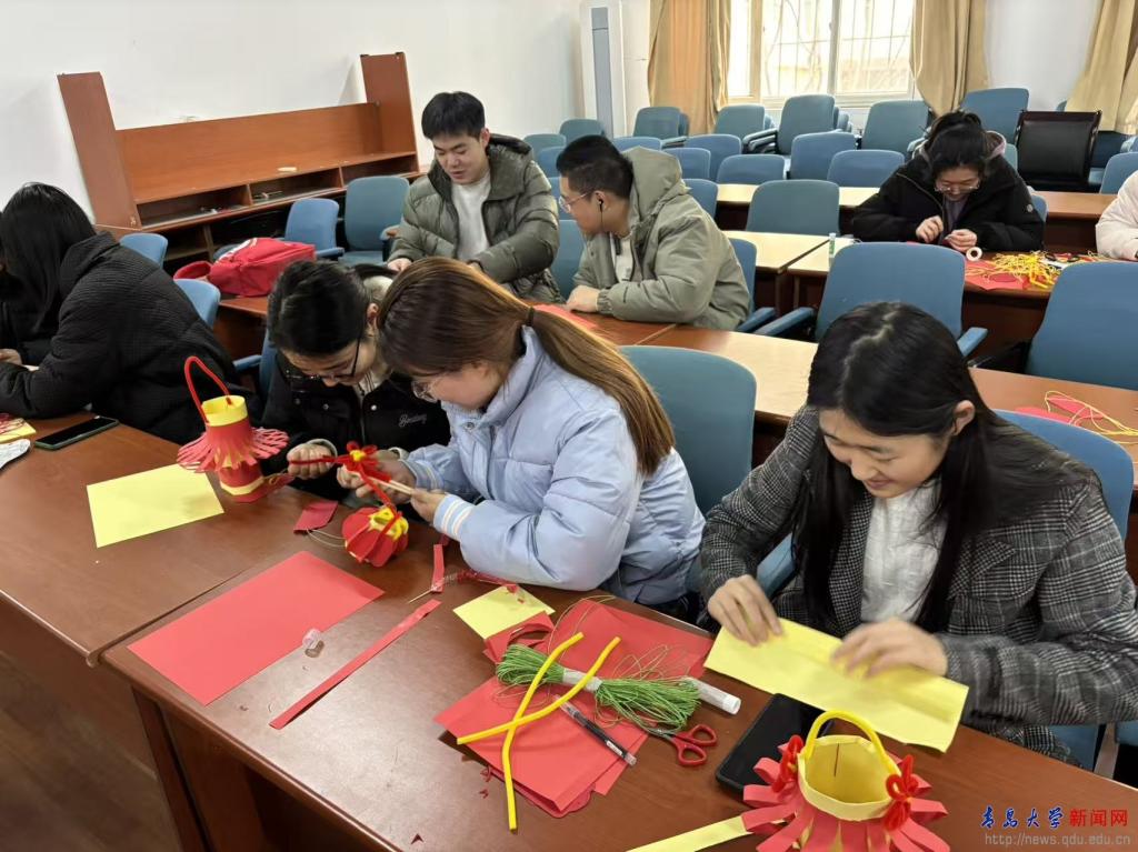数学与统计学院开展“花灯映月圆,巧手闹元宵”元宵灯笼制作活动,同学们通过裁剪、折叠、粘贴、组装等步骤,精心打造属于自己的元宵灯笼,在创作中加深了对元宵民俗的理解与认识,厚植文化自信与家国情怀。