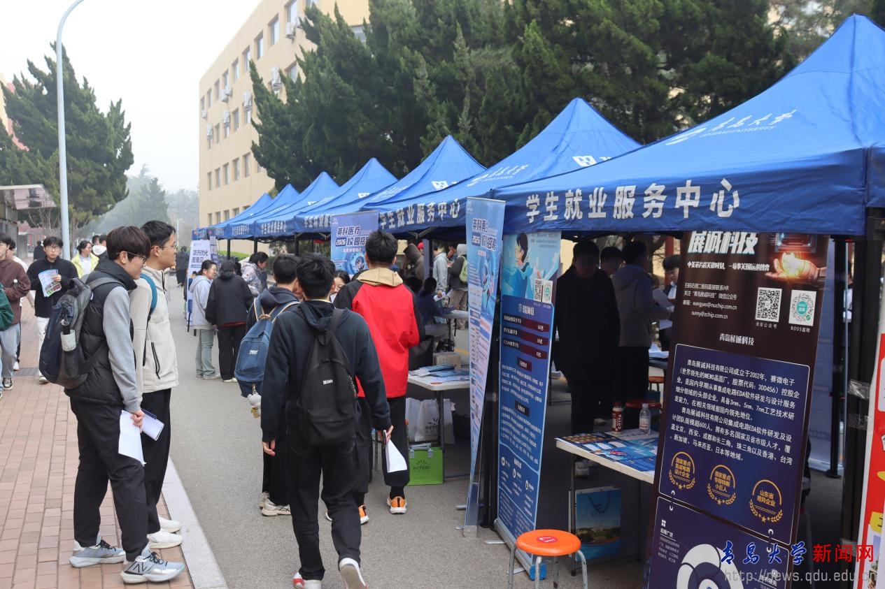 4月2日,计算机科学技术学院在浮山校区博知楼前组织举办2026届毕业生春季就业双选会。本次双选会共邀请22家优质企业进校开展招聘工作,聚焦软件开发、数据分析、智能开发等重点领域,提供就业岗位400余个,吸引400余名毕业生参与应聘。活动现场同步设立简历优化指导与征兵咨询服务专区,为毕业生提供全方位、多元化的就业指导服务。